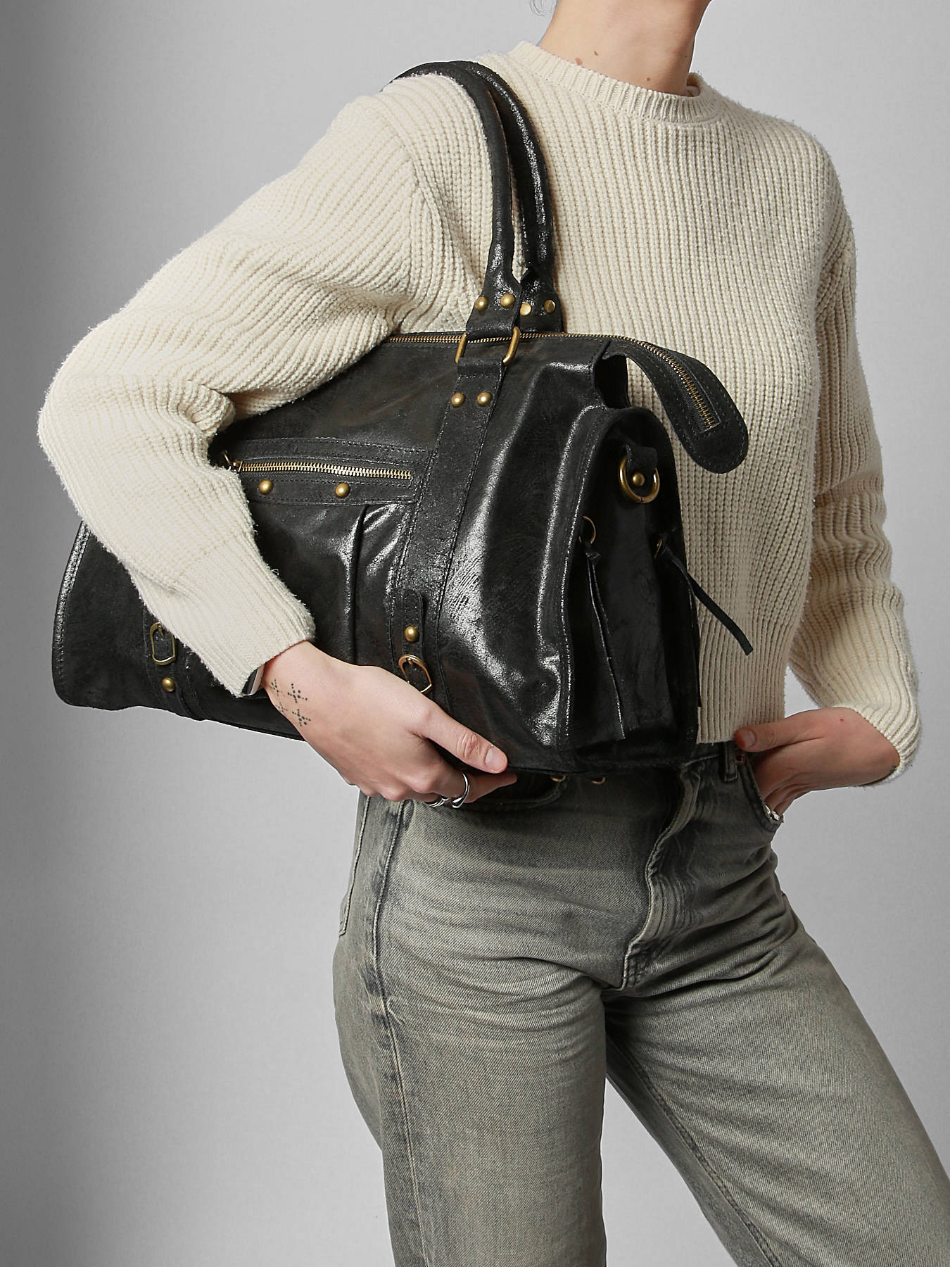 The SPAZZOLATO MILANO shoulder bag, crafted from cowhide leather, combines classic elegance with modern functionality. Its zip closure ensures the security of your belongings, while the front pocket provides quick access to essentials. The 17 cm handle height offers comfortable hand carry, complemented by an adjustable and removable strap for versatile wear—whether on the shoulder, crossbody, or by hand. Inside, a spacious main compartment is organized with two slip pockets and one zip pocket, allowing for optimal storage. Lightweight and sturdy, this bag easily complements all your outfits, from casual to more sophisticated looks, offering a perfect balance between style and practicality. An essential accessory for those seeking refined style every day.