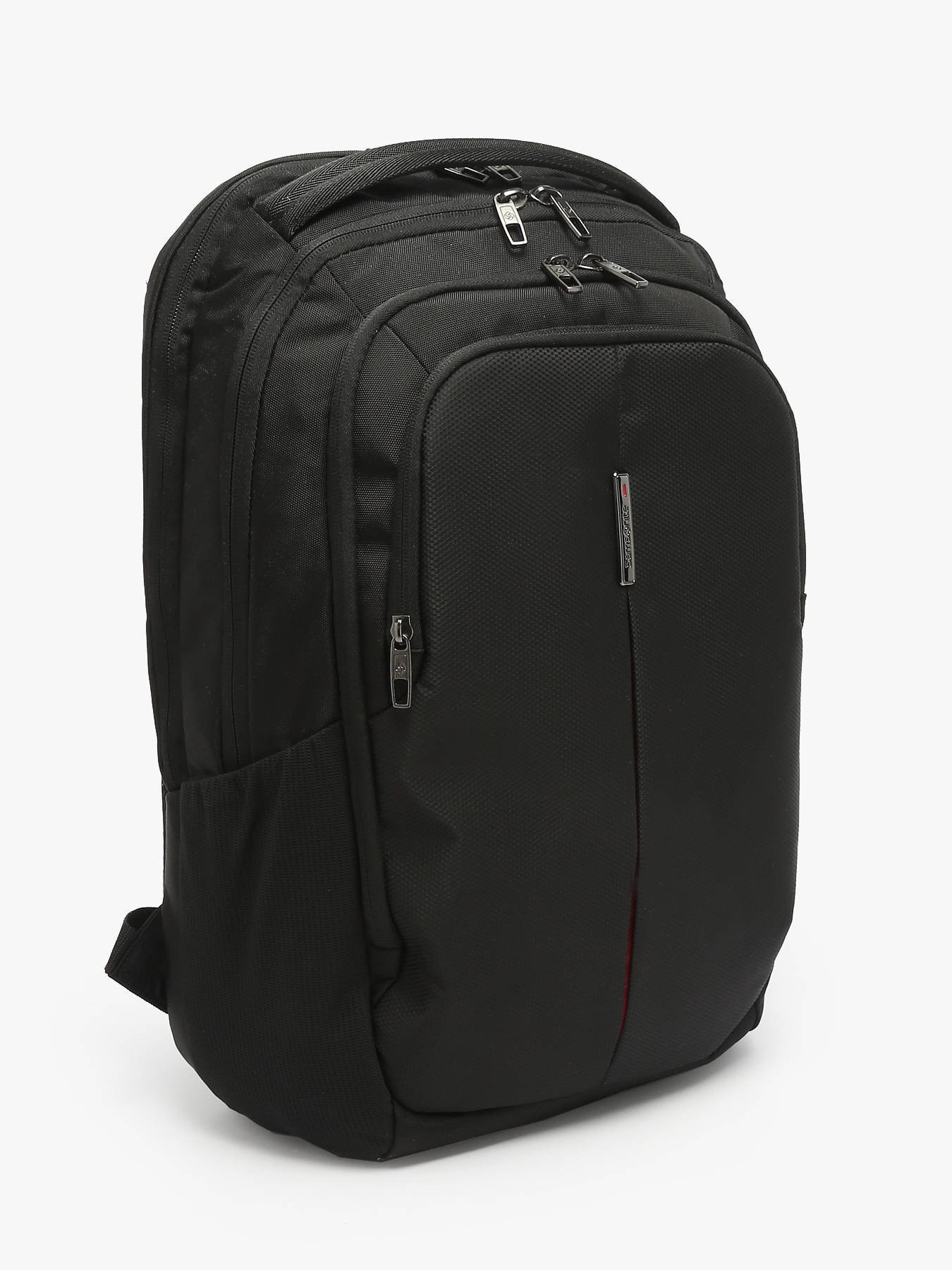 The Samsonite Guardit 3.0 17.3” business backpack is the perfect balance of modern design, professional functionality, and eco-conscious construction, crafted from recycled polyester with a water-resistant coating. Lightweight (0.8 kg) and spacious (32 x 48 x 20.5 cm – 27.5 L), it's made for business users on the move. It features 4 well-organized compartments: a reinforced rear section for a 17.3” laptop and 10.5” tablet, a section suitable for A4 documents, and two zipped front pockets for accessories. For maximum comfort, it includes soft, adjustable shoulder straps, a padded and ventilated back panel, a thick top handle, and a padded base for added protection. Also includes two side bottle holders and a rear trolley strap for easy transport. A QR code allows warranty identification (2 years). Guardit 3.0 maintains the classic features of the range while adopting a sleek, updated look.