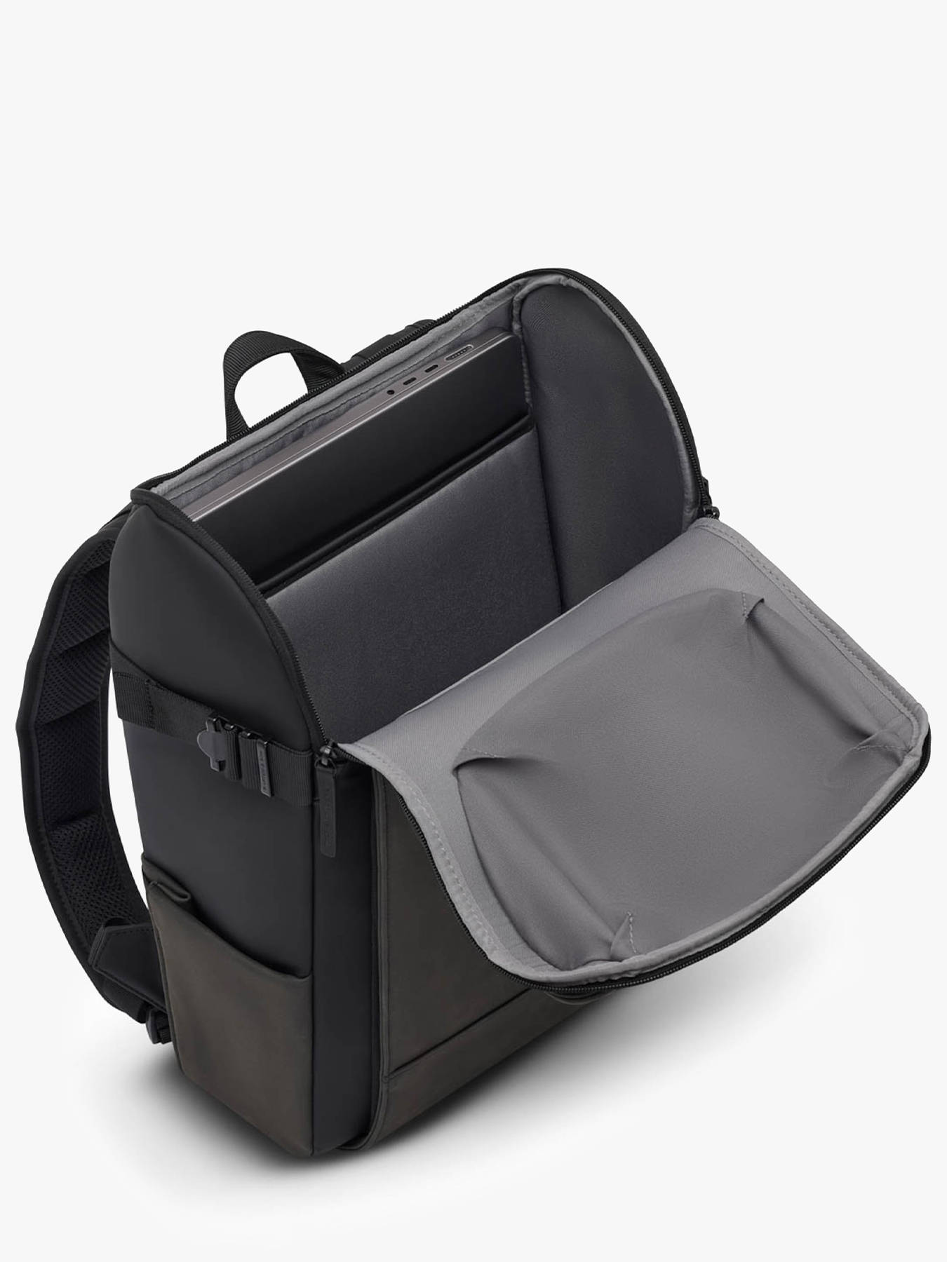 Le sac à dos KAPTEN AND SON, conçu en P.E.T recyclé, allie fonctionnalité et engagement écologique. Sa fermeture zippée sécurise efficacement vos affaires, tandis que ses multiples poches extérieures – deux à l’avant et une sur le côté – offrent un accès facile à vos indispensables. Les bretelles réglables garantissent un confort optimal lors du porté au dos, et le passant de soutien pour poignée téléscopique permet de fixer le sac sur une valise pour faciliter vos déplacements. À l’intérieur, un compartiment principal spacieux accueille vos documents et accessoires, complété par une poche zippée et une poche dédiée pour ordinateur jusqu’à 16 pouces. Ce sac peut contenir dossiers A4, cahiers et classeurs, idéal pour une organisation parfaite en milieu professionnel. Robuste, éco-responsable et élégant, ce sac à dos est l’allié parfait des journées bien remplies.