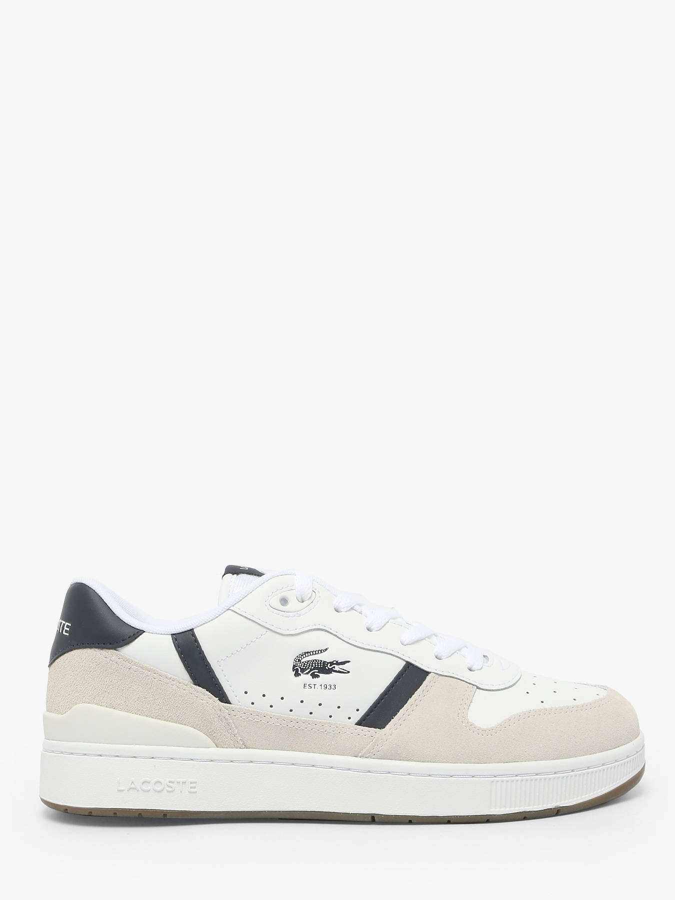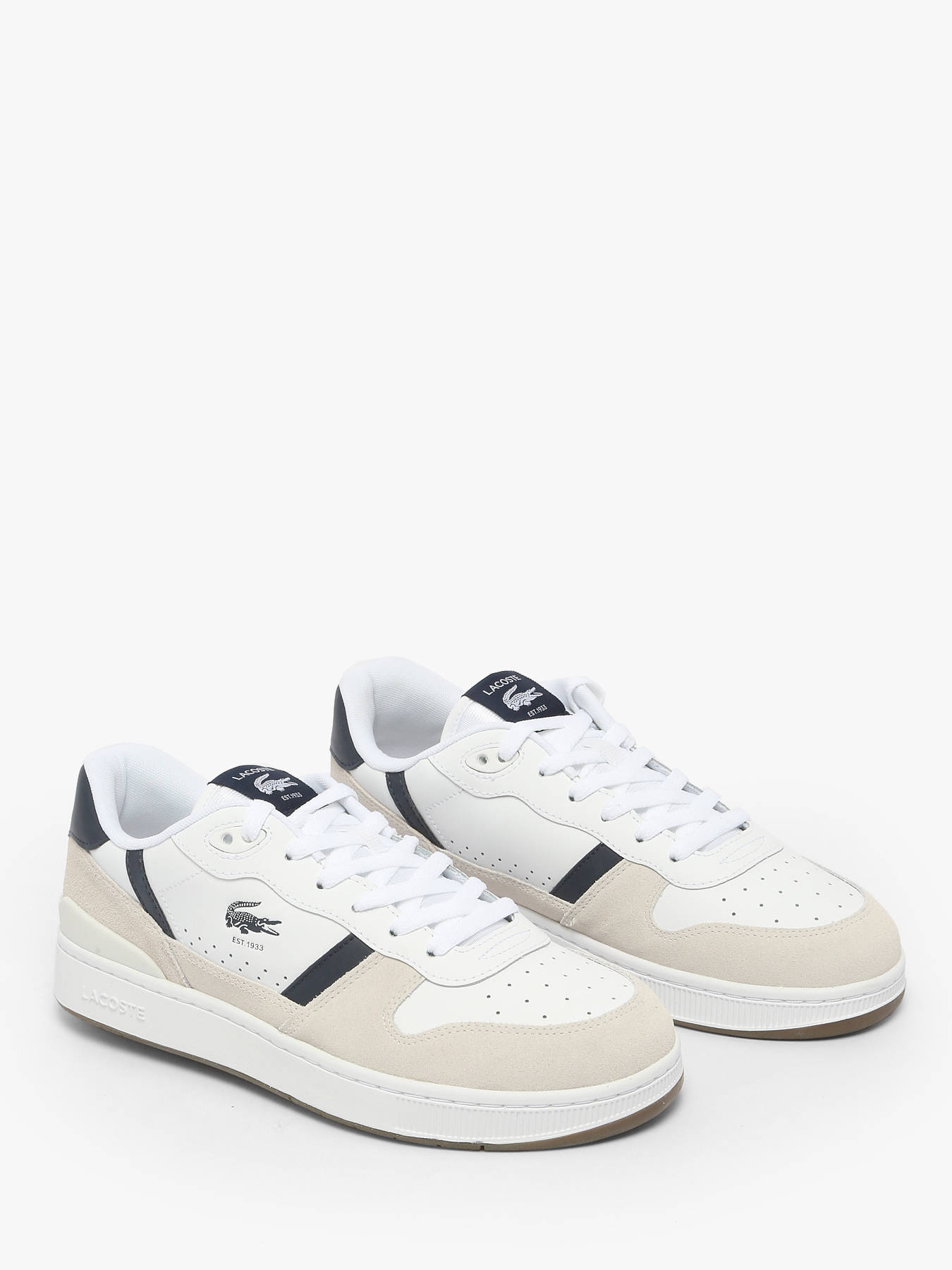 The LACOSTE T-Clip Set sneakers stylishly revisit 1980s tennis heritage. Featuring a white leather upper with navy suede inserts and refined vintage details, they deliver a retro-chic, authentic look. The embossed central crocodile embodies the brand’s timeless elegance. Both sporty and sophisticated, these sneakers combine comfort and style for a versatile urban silhouette that suits every occasion.