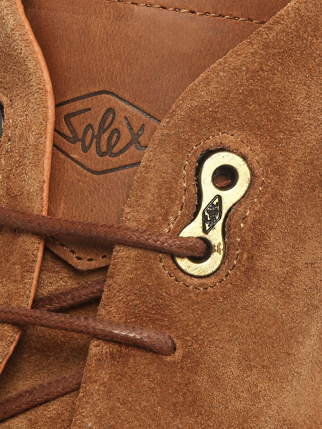 The SOLEX S3808 Suede Platform boots, available in cognac or khaki, combine comfort, style, and durability for a modern yet timeless look. Crafted in high-quality suede with a full leather lining, they provide softness and support throughout the day. Featuring waxed cotton laces, invisible metal eyelets, a Solex logo metal link, and heat-stamped heel branding, these boots stand out with refined details and a durable gum sole. The “Bourlet” stitching adds an elegant artisanal touch. Easy to pair with any outfit, they perfectly blend comfort, fashion, and sophistication. Runs slightly large; choose one size smaller than usual.