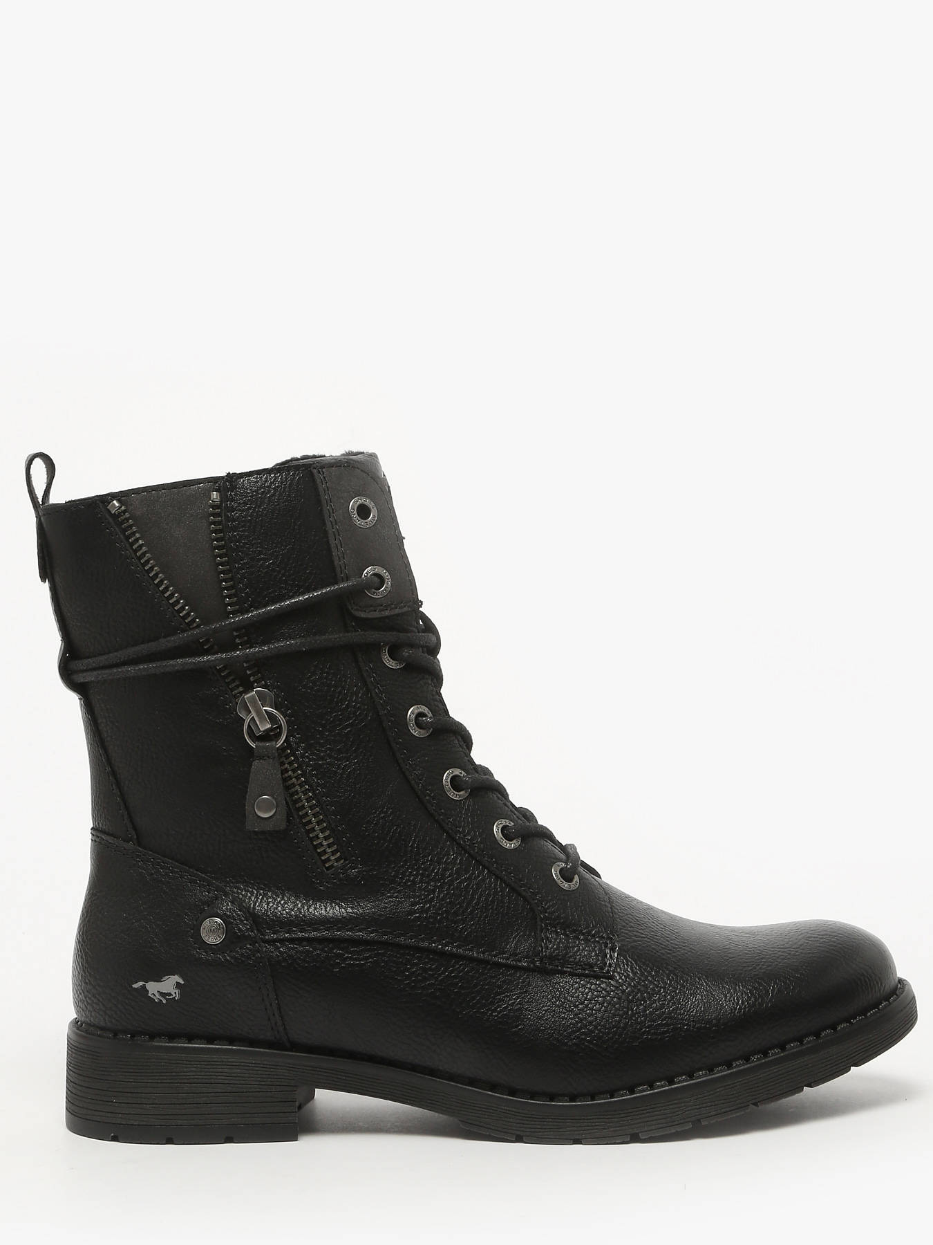 Discover the MUSTANG ANKLE BOOTS, a model combining modern style and optimal comfort, available in brown or black to suit all your outfits. Their smooth synthetic upper provides elegance and durability, while the synthetic fur lining ensures warmth and softness even in cooler weather. The textile insole offers all-day comfort, and the rubber outsole guarantees grip and durability on any terrain. Practical and secure, these boots feature a double closure with laces and a zipper, combining a perfect fit with easy wear. Versatile, they pair equally well with casual looks or more dressed-up outfits, perfectly embodying the Mustang spirit: boldness, comfort, and confident style for every season.