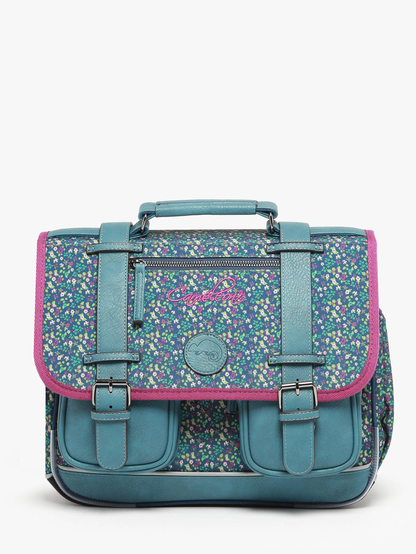 35 cm - 12 litres - 1.02 kg ~ Cartable cp 35cm de la ligne Vintage Fantasy signé Caméléon, parfait pour le CP et la maternelle ! On aime son look vintage avec ses finitions et sa belle poche zippée sur le rabat ! Il dispose de deux compartiments pour les cahiers formats 21x29,7 et 24x32cm ainsi qu'une petite poche zippée et un emplacement spécial règle. Il se ferme à l'aide d'un rabat et de deux fermoirs, et possède deux petites poches à fermeture éclair sur le devant, pratiques pour le goûter. Petit plus, le cartable dispose d'une étiquette nom. Très confortable, le dos et les bretelles sont rembourrés. Pour ne pas abîmer les affaires d'école, le fond du cartable est renforcé. Côté sécurité, des bandes réfléchissantes sont disposées autour du sac. Petit plus, la règle est offerte !