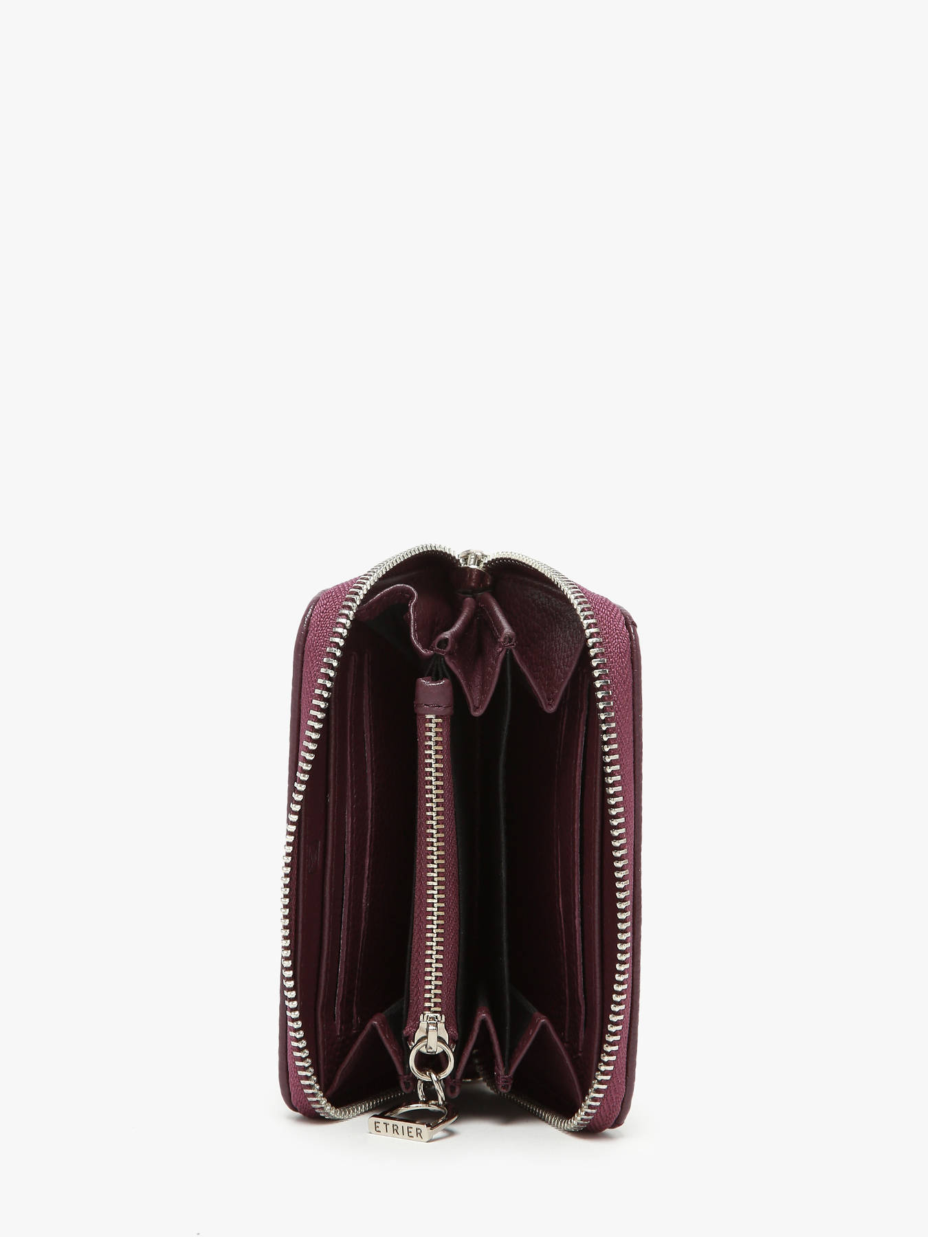 The ETRIER Altesse leather coin purse combines practicality and elegance. Featuring a side ring for attaching a strap, it includes one zippered pocket and six card slots. This season, the iconic Altesse models are reinvented in new shades, enhanced by the signature Etrier clasp.
