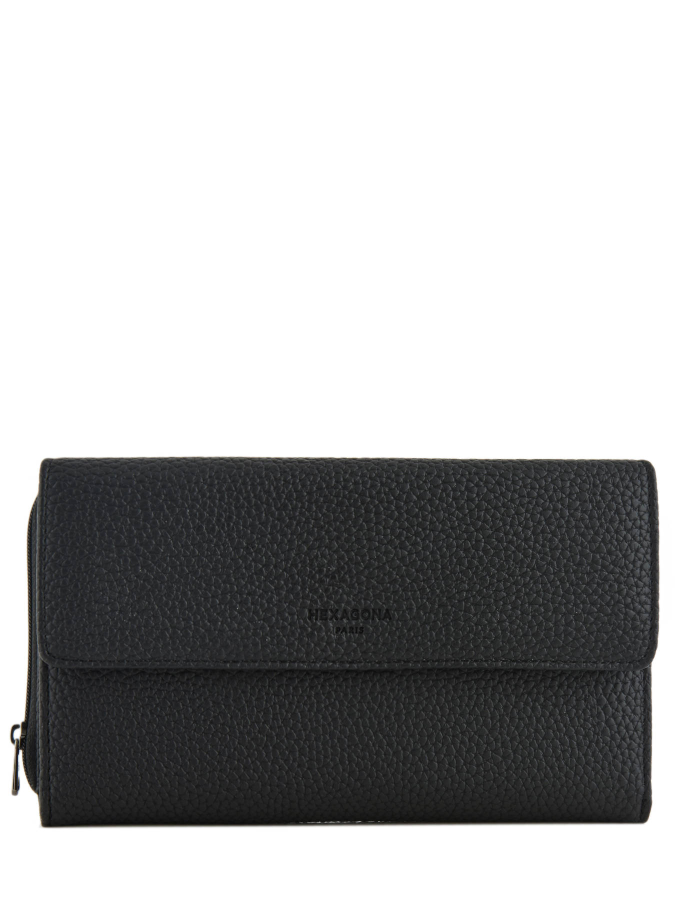 At Edisac, we offer you this Hexagona all-in-one from the ""Madrid"" line for its strong points: its grained synthetic material, its synthetic lining, its shiny gunmetal finish, its snap flap closure and its zipper closure. In addition, you should know that this piece also has inside a flap, a main compartment, a zipped wallet, six flat pockets (three of which have a transparent view), six card slots and a checkbook space. Finally, this accessory is compatible with credit cards, national identity card, driver's license, passport, car registration card and checkbook.