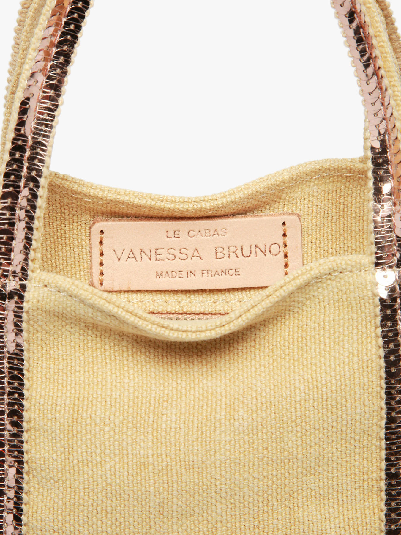 Our team advises you this Vanessa Bruno shoulder bag from the ""Cabas lin"" line for its assets: the XS size of this bag made of linen and sequins, its three carrying possibilities: hand, shoulder and shoulder strap which is adjustable and removable and its inside leather label which certifies that ""Le Cabas Vanessa Bruno [is] Made in France"". What are you waiting for to add this piece to your cart?
