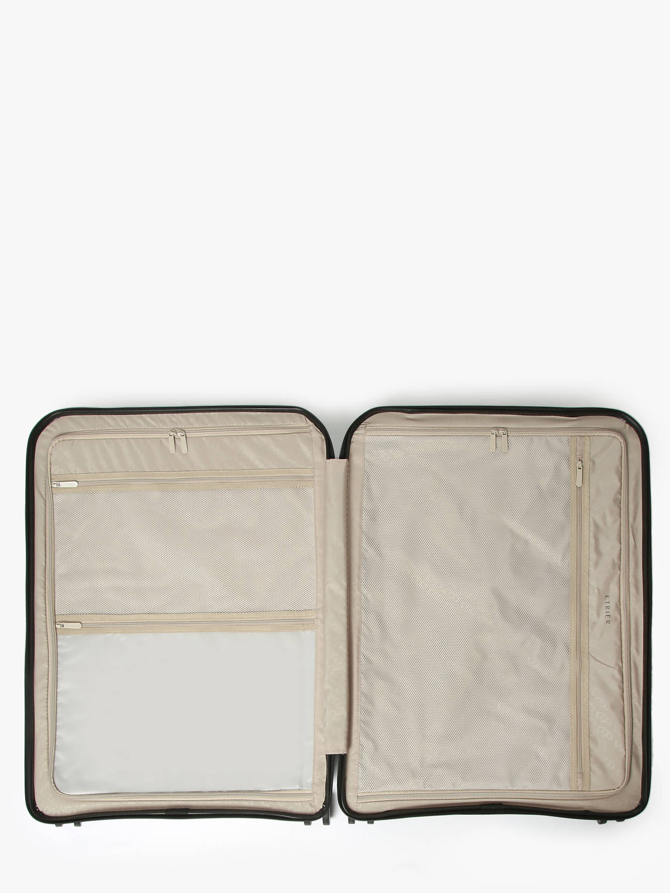 The Toronto suitcase, with its 115L capacity, is ideal for long stays combining style and practicality. Made from lightweight, resistant polypropylene, it features a zipper closure secured by a TSA lock and 4 twin wheels for perfect maneuverability. Its elegant design, marked by the tone-on-tone Etrier logo, and its special pocket for wet items make it a functional and refined choice for your travels.