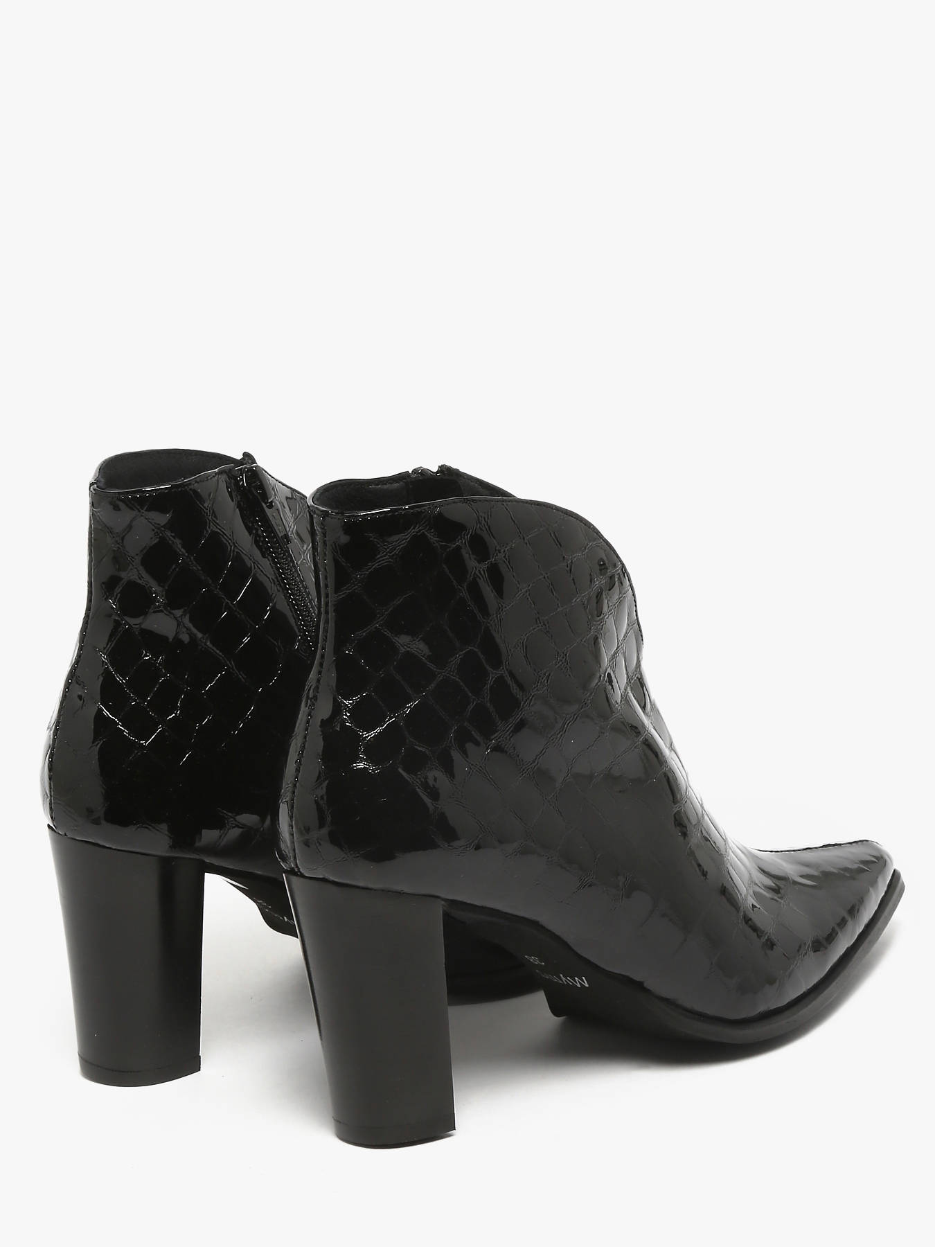The MYMA heeled ankle boots embody elegance and femininity with a refined, modern design. Crafted from high-quality smooth black leather, they feature a sleek silhouette with a slightly higher shaft that wraps the ankle for a graceful fit. The pointed toe enhances the shoe’s sophistication and sleek style, while the 8.5 cm block heel provides a chic look with stability and comfort. The leather lining and insole ensure lasting comfort and a luxurious feel with every step. These MYMA boots are perfect to elevate any outfit, from office wear to evening outings, adding a touch of modernity and refined style.