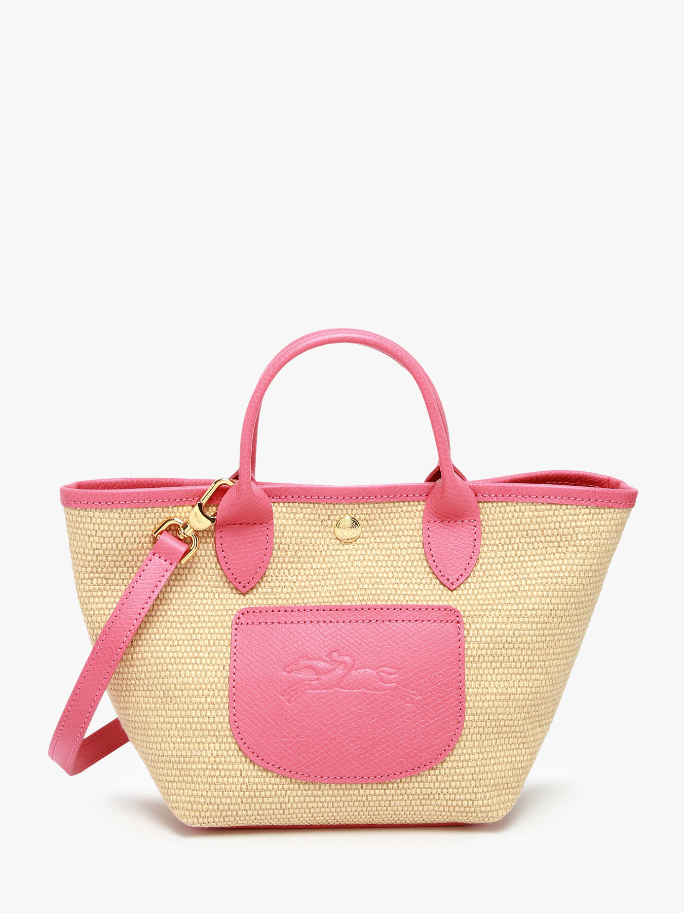 Summer and chic, the XS Le Pliage Collection basket from Longchamp embodies relaxed elegance. Crafted from coated canvas with a straw effect and trimmed with Russian leather, it combines lightness and refinement. The exterior leather pocket, embossed with the horse logo, adds a discreet touch of luxury. Practical and functional, this basket features a leather protective reinforcement at the base and a removable leather shoulder strap, allowing you to carry it by hand or on the shoulder according to your preference. This compact model, with its simple design, evokes the spirit of holidays with its timeless silhouette. It embodies the perfect blend of tradition and modernity, staying true to the PLIAGE codes, and is reinvented each season to add a touch of creativity and elegance to your daily life.