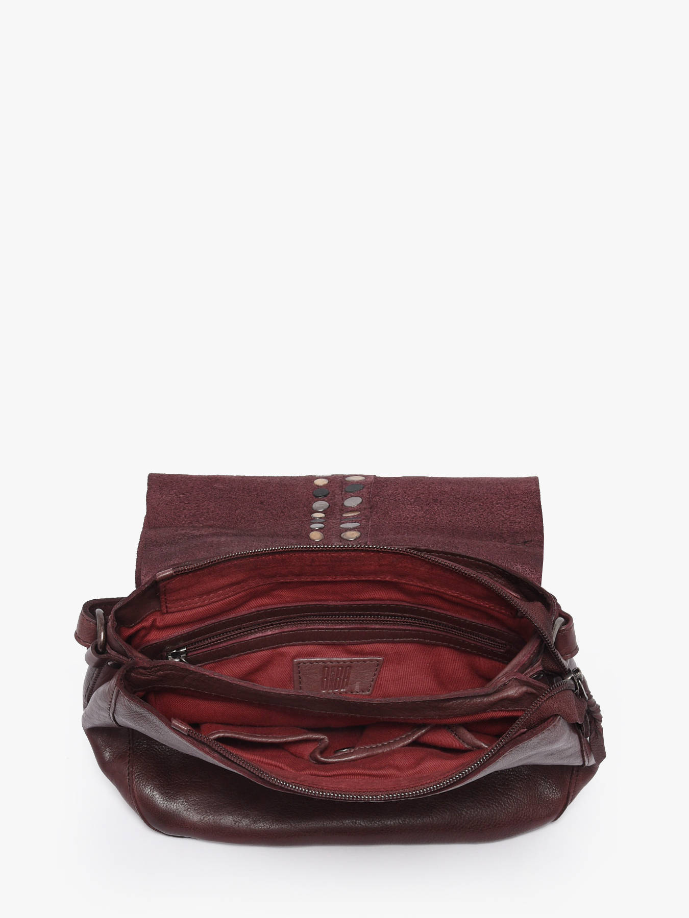 This women's handbag has been made in a nice quality cow skin leather. It is also decorated with small studs on the flap, which gives it a more modern style.