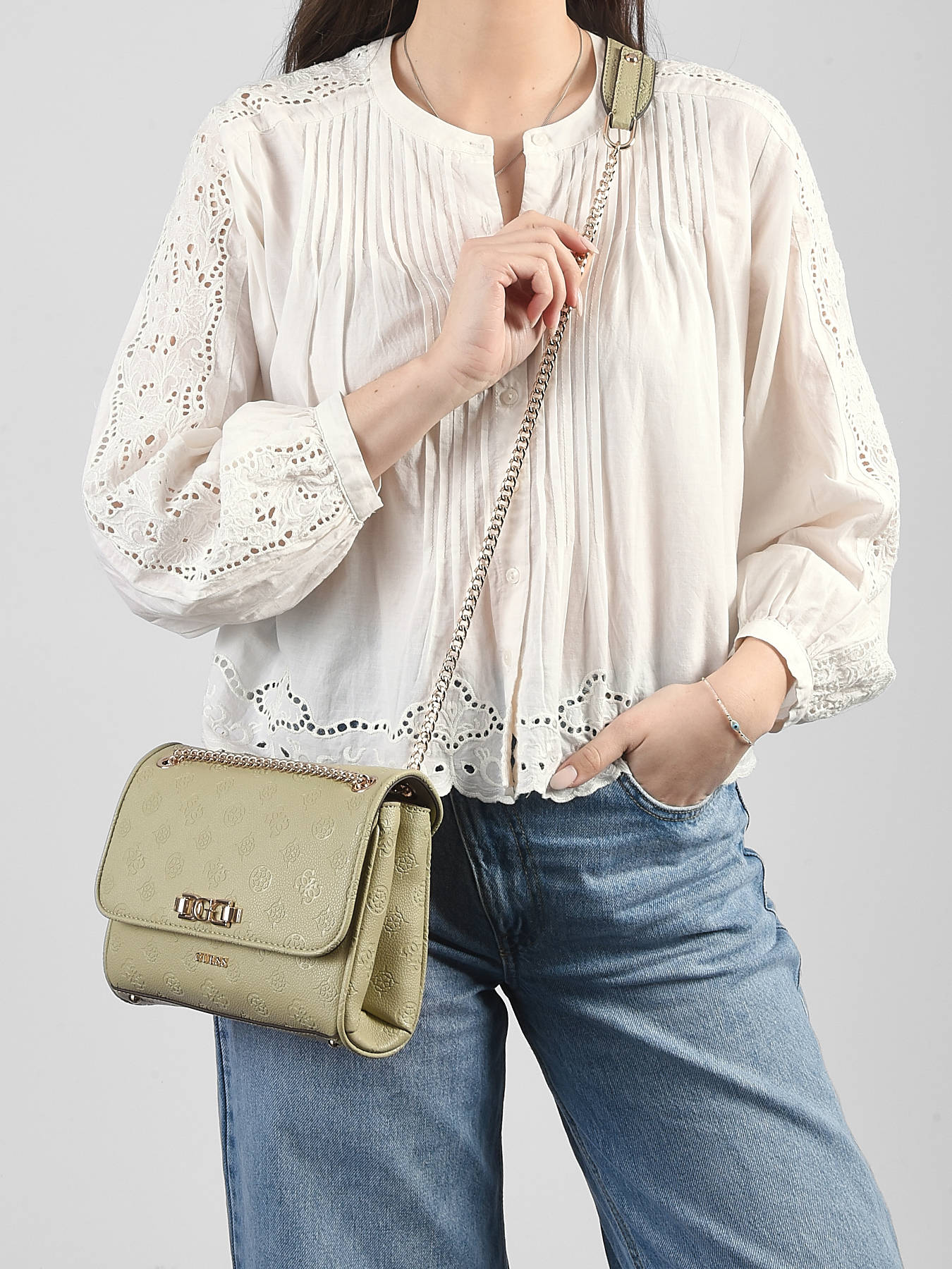 Le sac bandoulière ANISE GUESS en P.U allie élégance et fonctionnalité pour un look chic au quotidien. Son extérieur lisse et structuré est équipé d’une poche au dos pour garder vos essentiels à portée de main, tandis que le rabat avec fermeture aimantée assure sécurité et praticité. Conçu pour un porté en bandoulière, il offre un style moderne et polyvalent, idéal pour vos déplacements urbains. À l’intérieur, deux compartiments permettent d’organiser vos affaires, complétés par une poche zippée pour les objets précieux et trois emplacements pour cartes bancaires, facilitant l’accès à vos indispensables tout en gardant vos effets personnels parfaitement rangés. Léger et raffiné, ce sac est idéal pour accompagner vos tenues de jour comme de soirée. Son design minimaliste et ses finitions en P.U apportent une touche sophistiquée et contemporaine, faisant de ce sac un accessoire pratique et stylé qui allie esthétique et organisation.