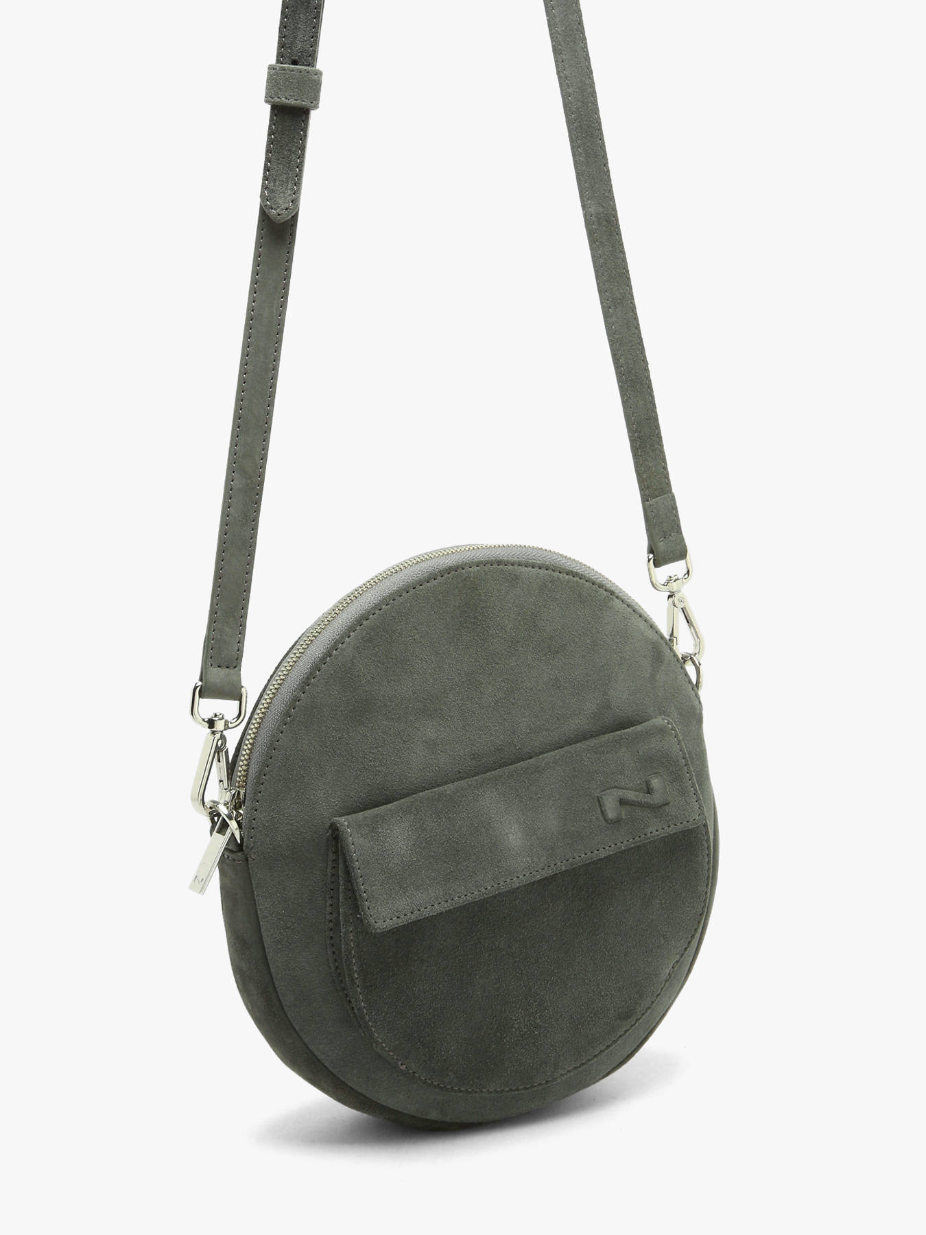 Mesdames, vous allez adorer le look original de ce sac bandoulière de la ligne Dorine de chez Nathan Baume. Ce sac à main femme est une pièce tendance composée d'un superbe cuir de vachette effet daim et doté d'une forme ronde. Le petit format de ce sac à main Nathan Baume vous permet de n'emporter que l'essentiel au quotidien. Sous la fermeture zippée de ce sac bandoulière, vous trouverez une petite poche simple et une poche zippée dans lesquelles vous pourrez ranger de petits objets. Une autre petite poche à rabat se trouve sur l'avant. Grâce à la bandoulière réglable et amovible, vous pourrez choisir de porter ce sac bandoulière Dorine de chez Nathan Baume croisé ou sous le bras. Associez ce sac à main femme à une tenue tendance et vous serez au top.
