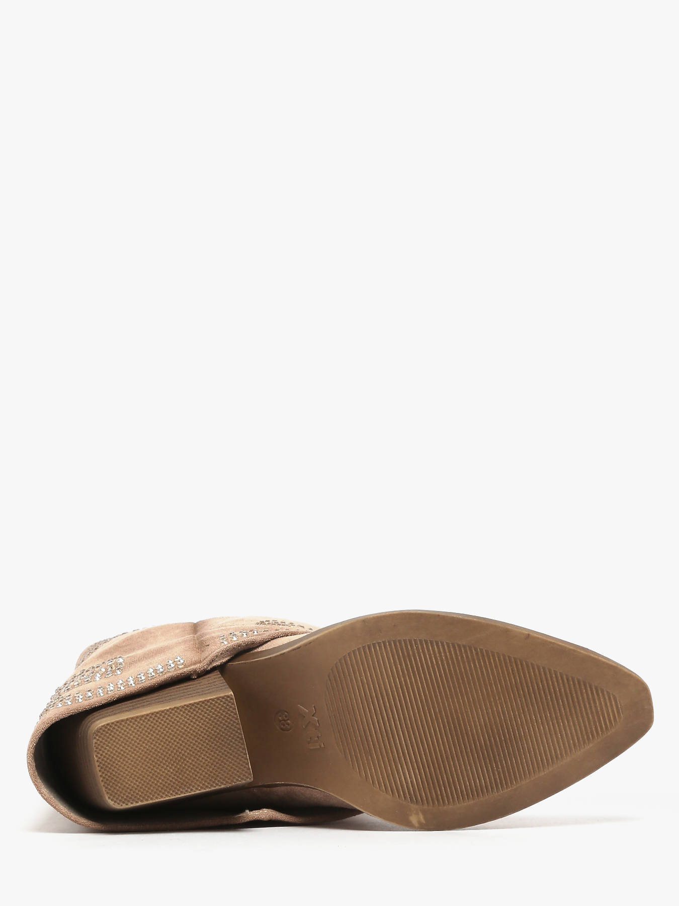 Discover the reinvented cowboy ankle boot by XTI with this women’s design available in camel or beige. Crafted from soft suede, it stands out with its elegant folded shaft and subtle rhinestone detailing, bringing refined sparkle and modern attitude. The western-inspired sole delivers bold, on-trend flair, while the 7 cm heel lifts the silhouette without compromising on comfort. Perfect for elevating both casual city looks and chic outfits, it provides stability thanks to its non-slip sole and features a removable insole. A contemporary western-style boot for confident, fashion-forward looks.