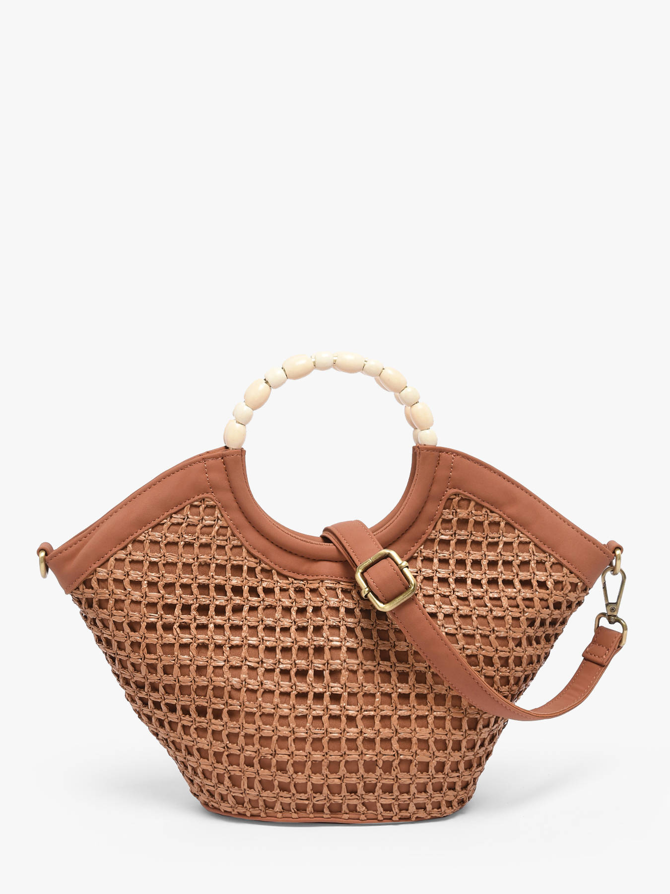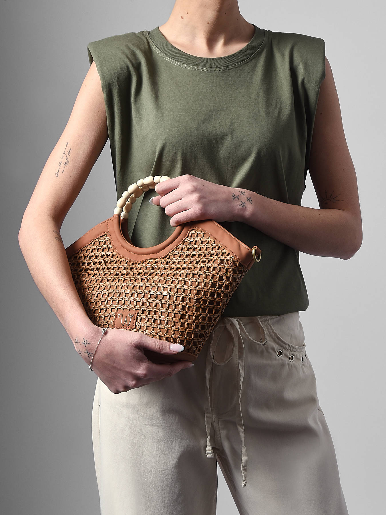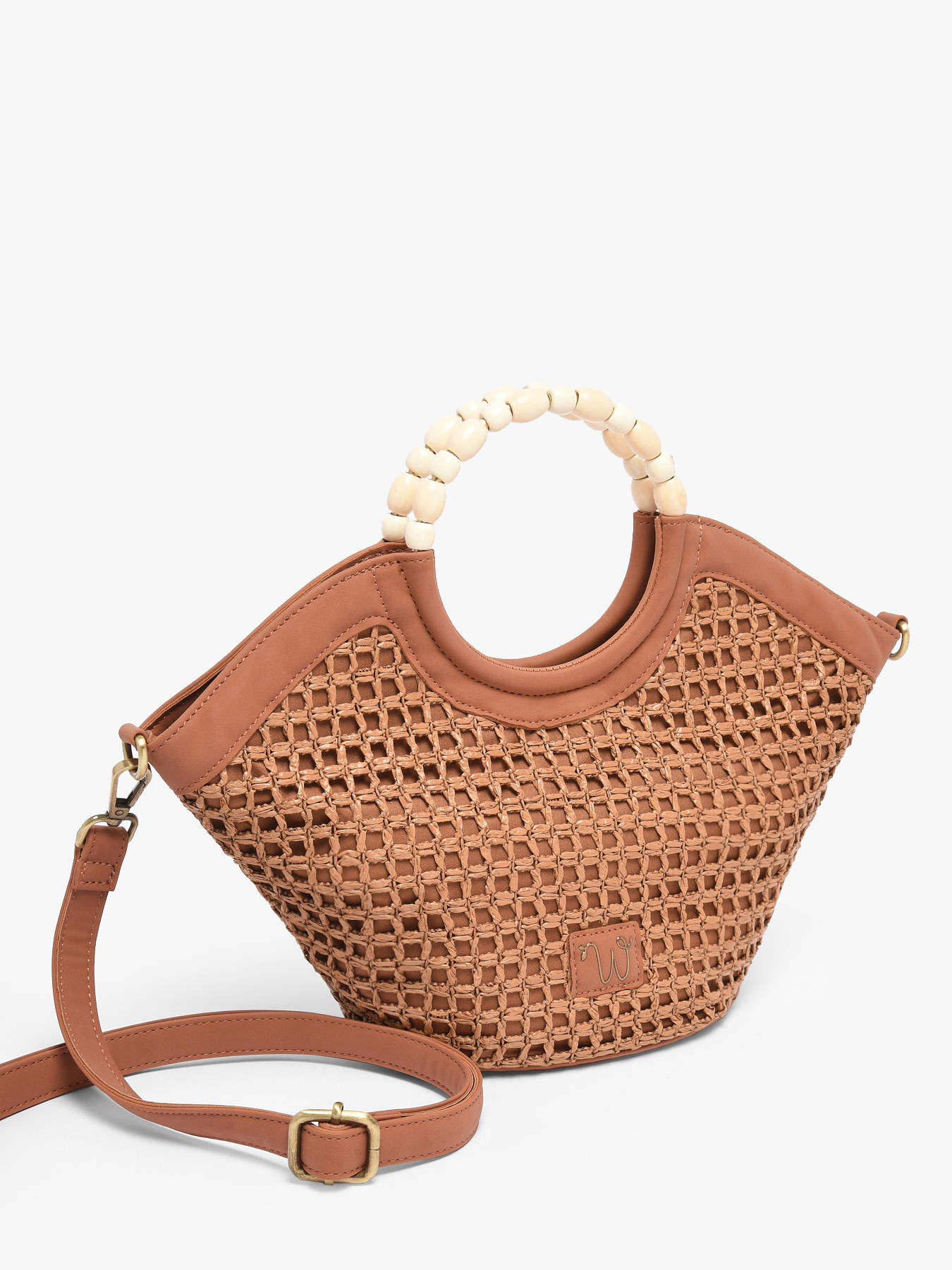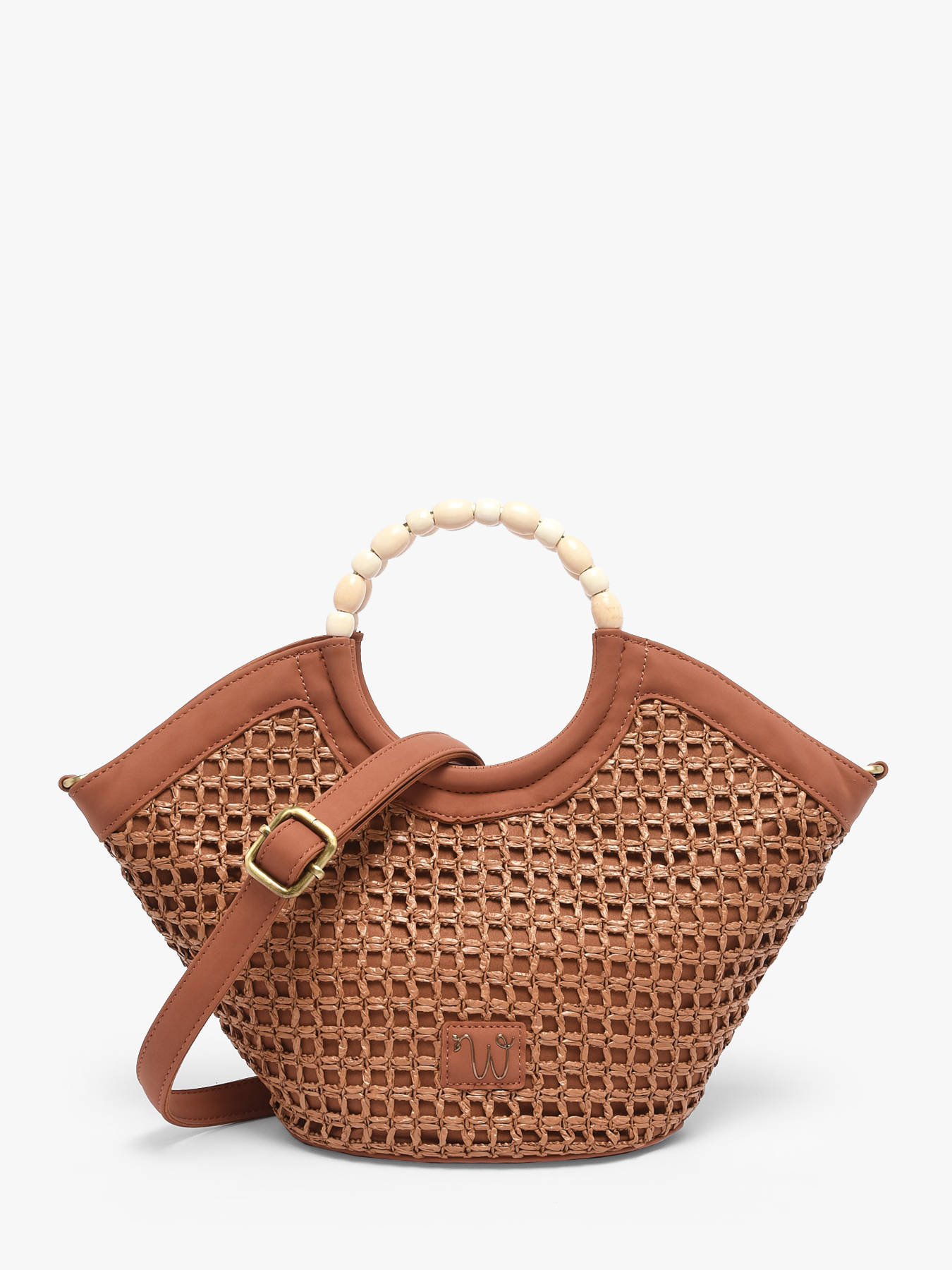 The small-format WOOMEN crossbody bag from the Neflier Estival line combines elegance, practicality and a summery spirit. Its main material in polypropylene trimmed with recycled polyurethane, paired with a cotton and linen lining, ensures both durability and lightness. Refined finishes and the beaded handle add originality and a sophisticated touch to the design. This two-material bag features a zip closure and a removable polyurethane strap, offering versatile carrying options to suit your style. The golden resin logo completes the look, making this bag a functional and stylish accessory, perfect for enhancing your summer outfits.
