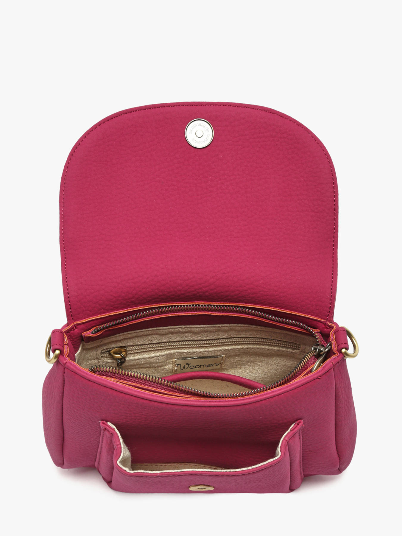 The WOOMEN Camomille Pearl crossbody bag stands out with its delicate fringes and wooden ring adorned with beads on the flap, combining a countryside-inspired charm with modern sophistication. Made from polyurethane containing 58% recycled materials, with a cotton and linen lining, it offers both lightness and durability. Featuring a flap with a magnetic snap and zip closure, a front pocket, and a zippered back pocket, it allows optimal organization of your essentials. The strap, accented with golden trim, provides versatile wear, while the golden resin logo adds an elegant and contemporary touch. With its beaded details and meticulous finishes, this bag is a practical, stylish, and distinctive accessory, perfect for complementing any outfit.