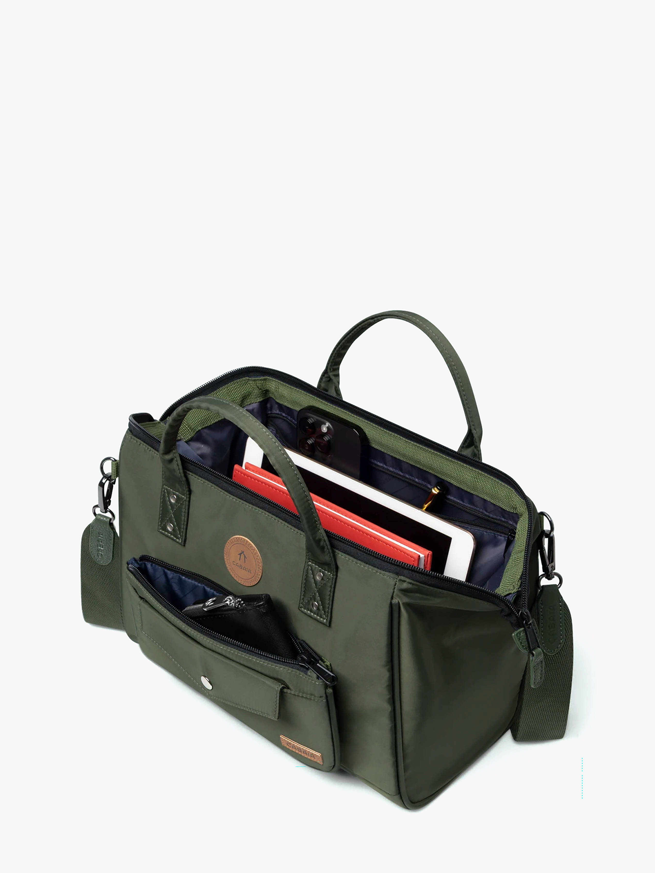 Meet the Cabaia Crossbody Bag – Size L, your perfect everyday companion. Lightweight (505 g) yet roomy (9.2 L), it combines practical design with modern style. Made from recycled water-repellent nylon with a polyurethane coating and polyester lining, this bag is vegan and backed by a lifetime guarantee. Smartly designed for convenience, it features a wide-angle opening for easy access, an internal zip pocket, a divider with zipper to keep your essentials organized, and a rear zip pocket for secure storage. Inside, a handy key clip ensures you never lose your keys. The bag comes with a removable and adjustable strap (145–168 cm) and includes a Crossbody Medium front pocket, making it customizable and versatile. Functional, durable, and stylish, the Cabaia crossbody bag is perfect for workdays, city outings, or travel adventures.