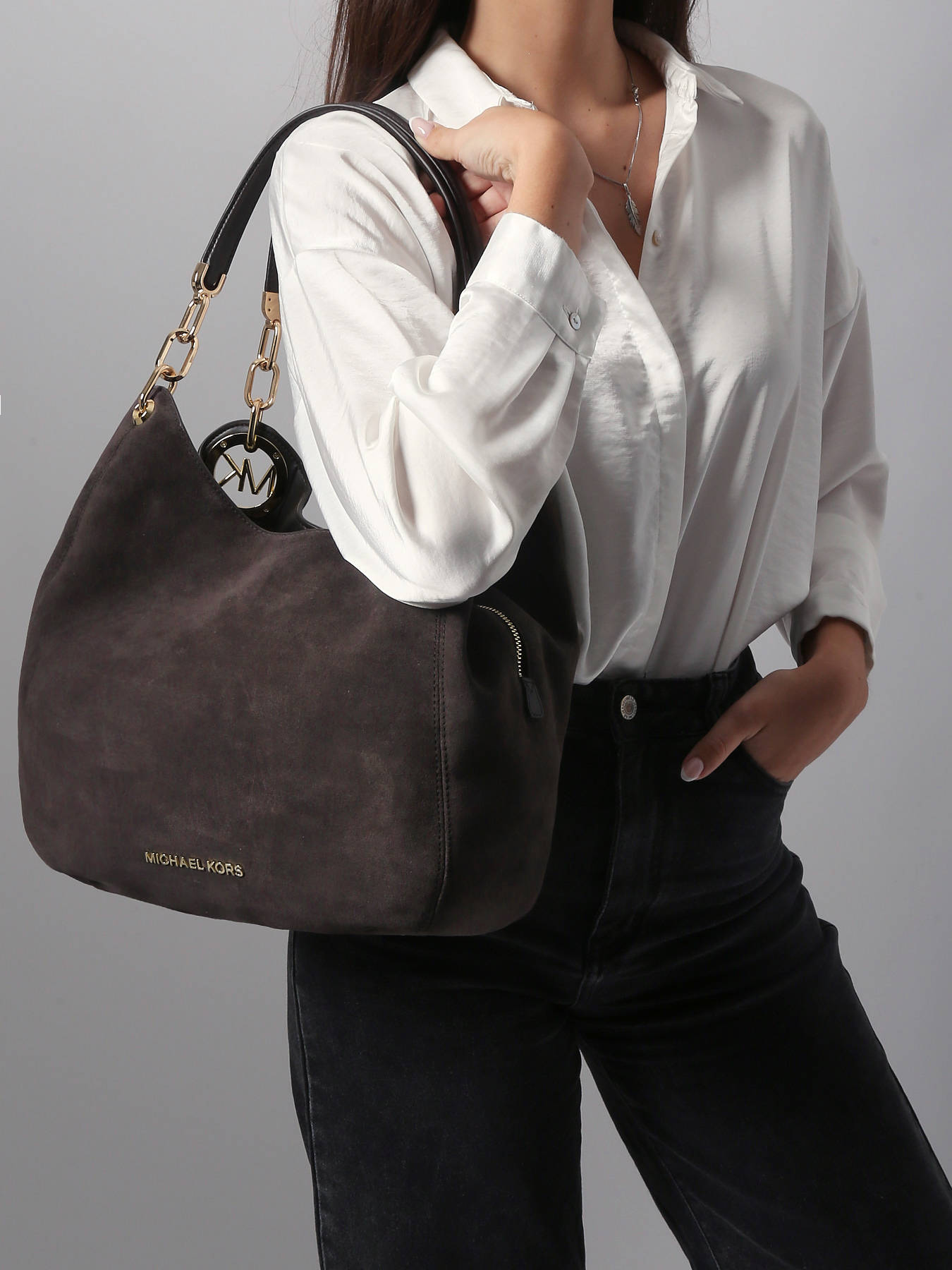 This Michael Kors shoulder bag, crafted from supple cowhide leather, perfectly balances timeless elegance and everyday practicality. Its refined design features a front pocket and two back pockets for quick access to essentials. The zip closure ensures your belongings stay secure, while the 30 cm handle allows for comfortable hand or shoulder carrying. Inside, a spacious main compartment and a zip pocket provide neat organization for your necessities. Defined by clean lines and impeccable detailing, this bag reflects the signature Michael Kors sophistication. Both chic and functional, it’s the perfect companion to elevate your look — from professional outfits to casual ensembles.