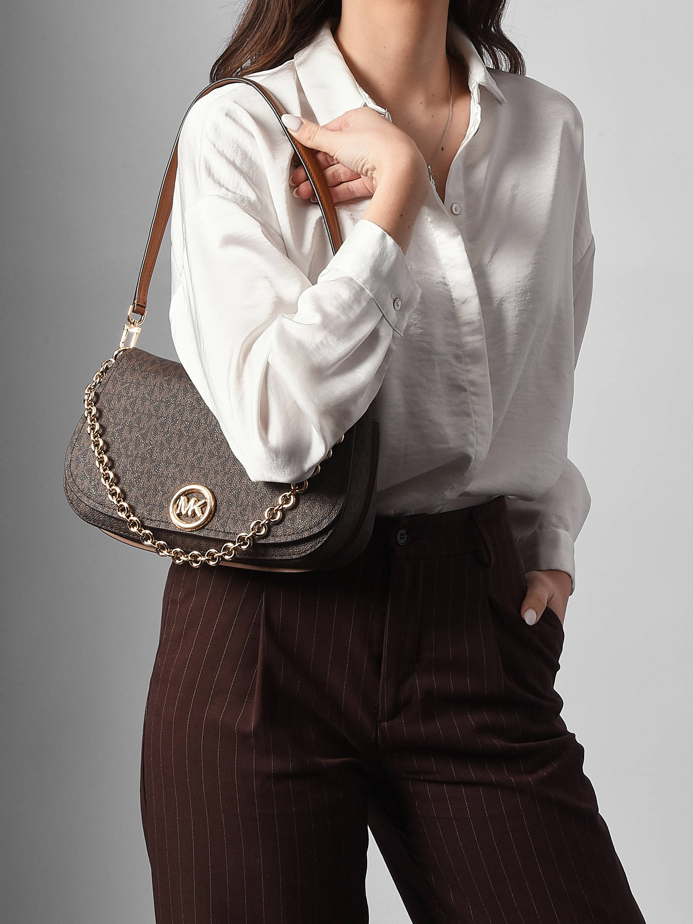 The NOLITA shoulder bag by MICHAEL KORS is made of lightweight and durable polyester. It features a flap with a magnetic closure for quick and secure access. The handle height is 26 cm, providing a comfortable shoulder or crossbody wear thanks to its adjustable and removable strap. On the outside, the bag includes a back pocket for practical storage. Inside, it has a single compartment with two simple pockets, ideal for organizing your small essentials. Stylish and functional, this bag is perfect for your active days.
