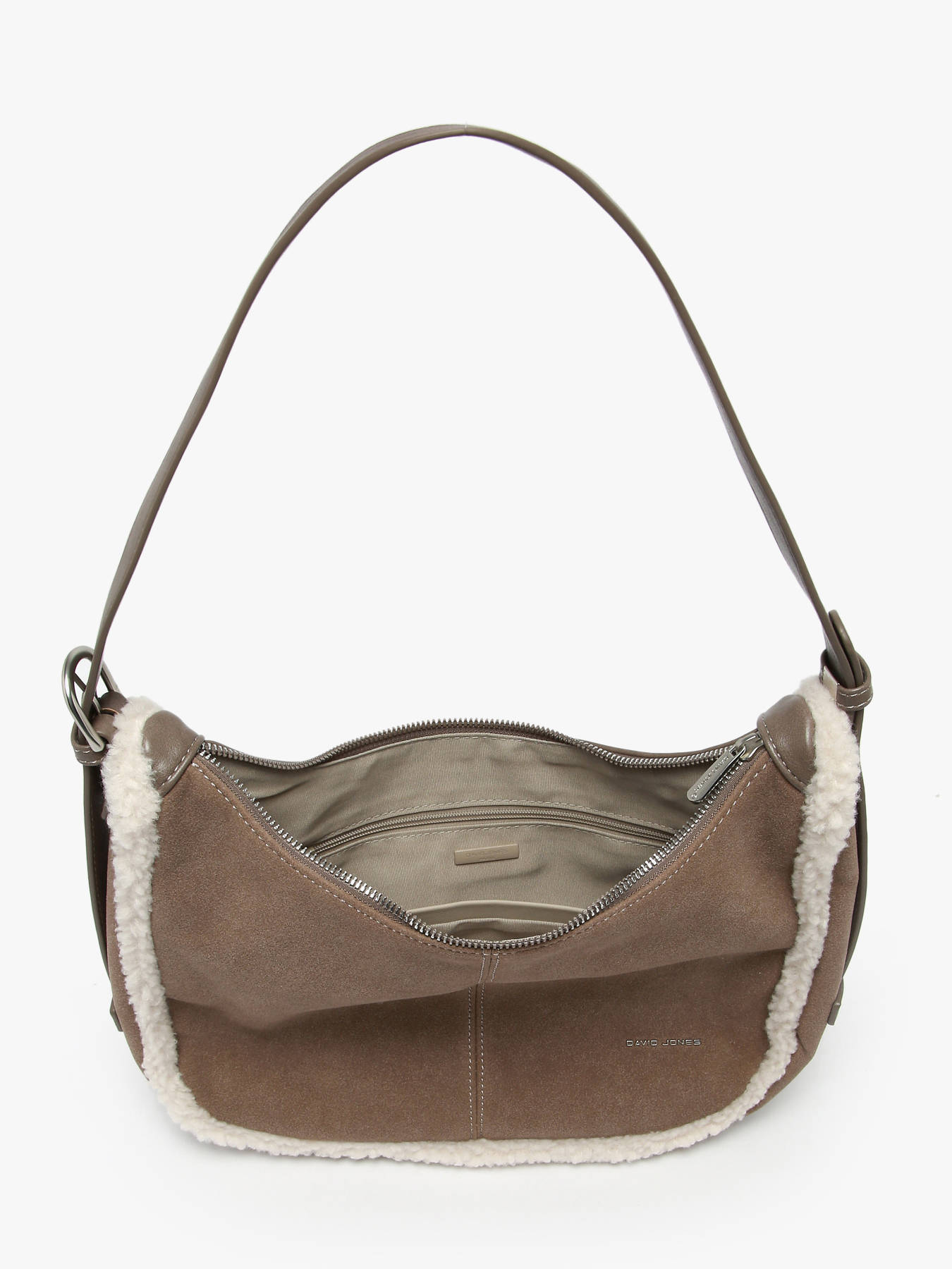 The SHEEP shoulder bag by DAVID JONES stands out with its soft, elegant style. Made from coated canvas with a suede-like finish, it offers a velvety feel and refined look while remaining easy to maintain. Its zip closure ensures secure opening, and the 27 cm handle height provides comfortable shoulder carry for everyday use. On the exterior, a back pocket keeps your essentials within easy reach. Inside, the main compartment, simple pocket, and zip pocket offer practical, well-organized storage. Available in three colors, the DAVID JONES SHEEP bag combines style, lightness, and functionality to complement all your outfits with elegance.