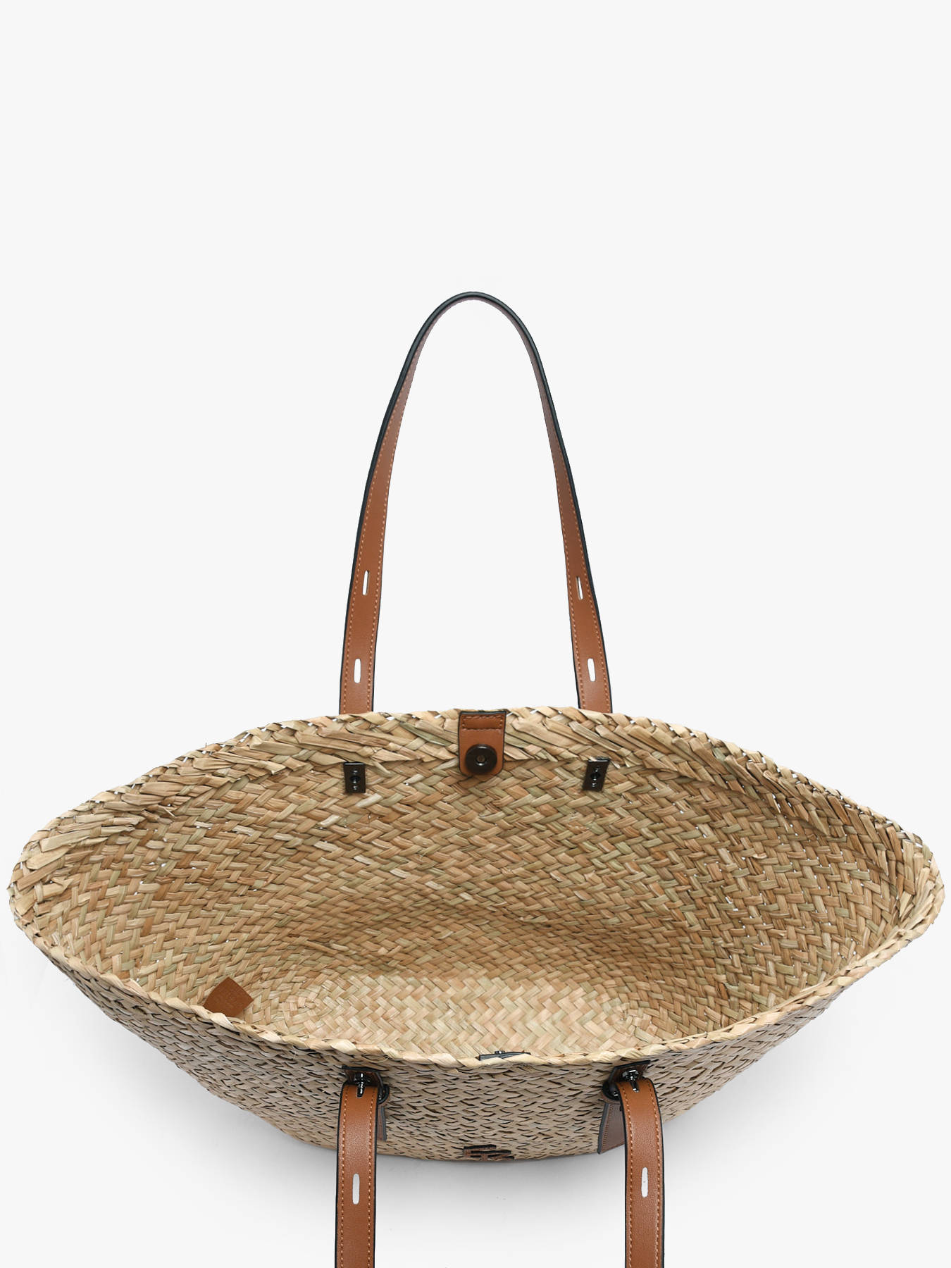 The ETRIER shoulder bag from the SHETLAND line reinvents the summer tote with elegance and modernity. Crafted from reed with leather detailing, it perfectly combines natural style and everyday practicality. Its spacious compartment closes with a magnetic snap, providing easy and secure access to your essentials. The shoulder strap is adjustable thanks to a slider system enhanced with ETRIER-engraved hardware, while the 22 cm handle ensures optimal comfort. The leather logo patch on the front of the tote adds a distinctive, authentic touch, making this bag a stylish companion for your summer looks.