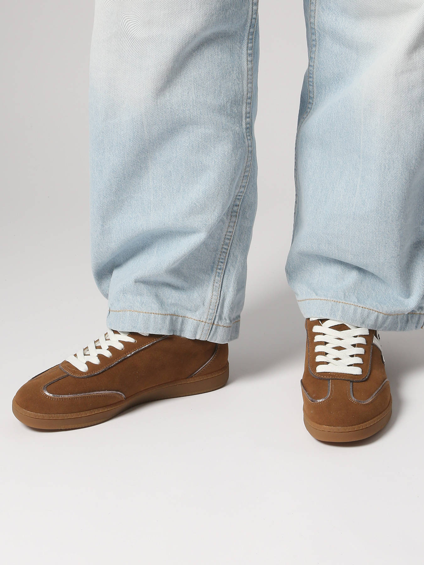 Fall for the Sarah monogram sneakers by Vanessa Wu, a perfect blend of retro style and modern comfort. Made in gold textured faux leather or dark camel split suede with a white monogram, they add elegance and originality to any outfit. Available in camel or gold, they suit every look. The removable microbead insole and slim stitched retro camel sole provide all-day comfort, support and lightness. This model fits true to size, take your usual size or go up for half sizes. Perfect for a chic yet casual style, these sneakers are a must-have from Vanessa Wu’s collection.