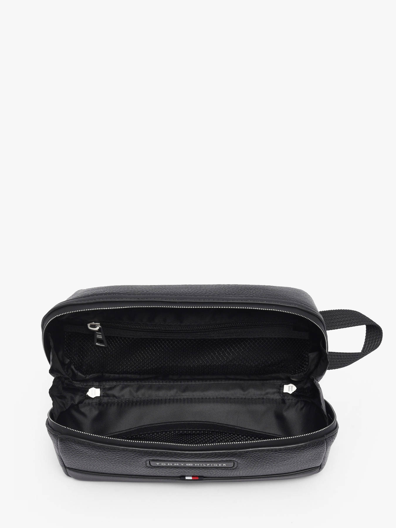 The Tommy Hilfiger toiletry bag, made from recycled P.E.T, combines environmental responsibility with practicality. Its durable exterior reflects an eco-friendly commitment while offering a sleek design. The zip closure ensures the security of your toiletries. Inside, it features a spacious main compartment, complemented by one simple pocket and one zip pocket, ideal for neatly organizing your essentials. Compact and lightweight, this toiletry bag is perfect for travel, blending functionality and style while helping to protect the planet.