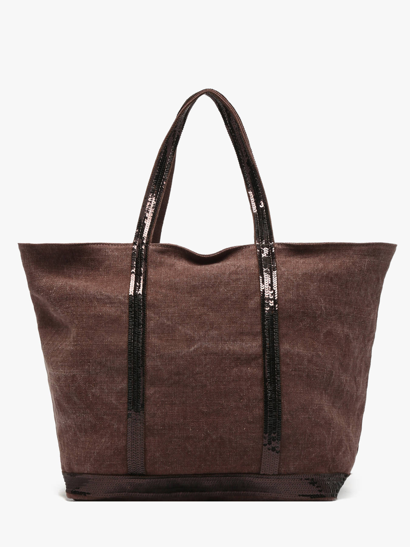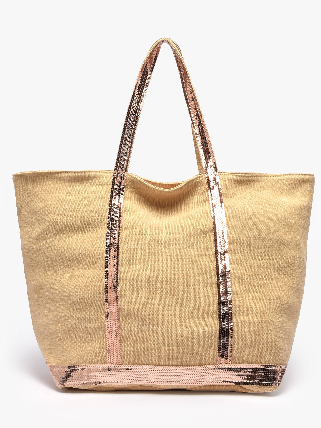 This linnen version of the legendary Le Cabas tote bag by Vanessa Bruno is highly durable and lightweight. The waterproof linnen material is finished with sequin shoulder straps. The bag closes with a zipper and has a central inside pocket. It also features a small inside zipped pocket, which is topped off with a leather label ""Le Cabas Vanessa Bruno made in France"".